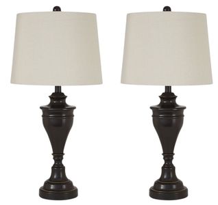 This elegant 2-piece lamp set features a warm bronze finish and classic design, perfect for adding a touch of sophistication to any room. Each lamp includes a neutral-toned shade that softens the light, creating a cozy and inviting atmosphere in your living space or bedroom.Read More